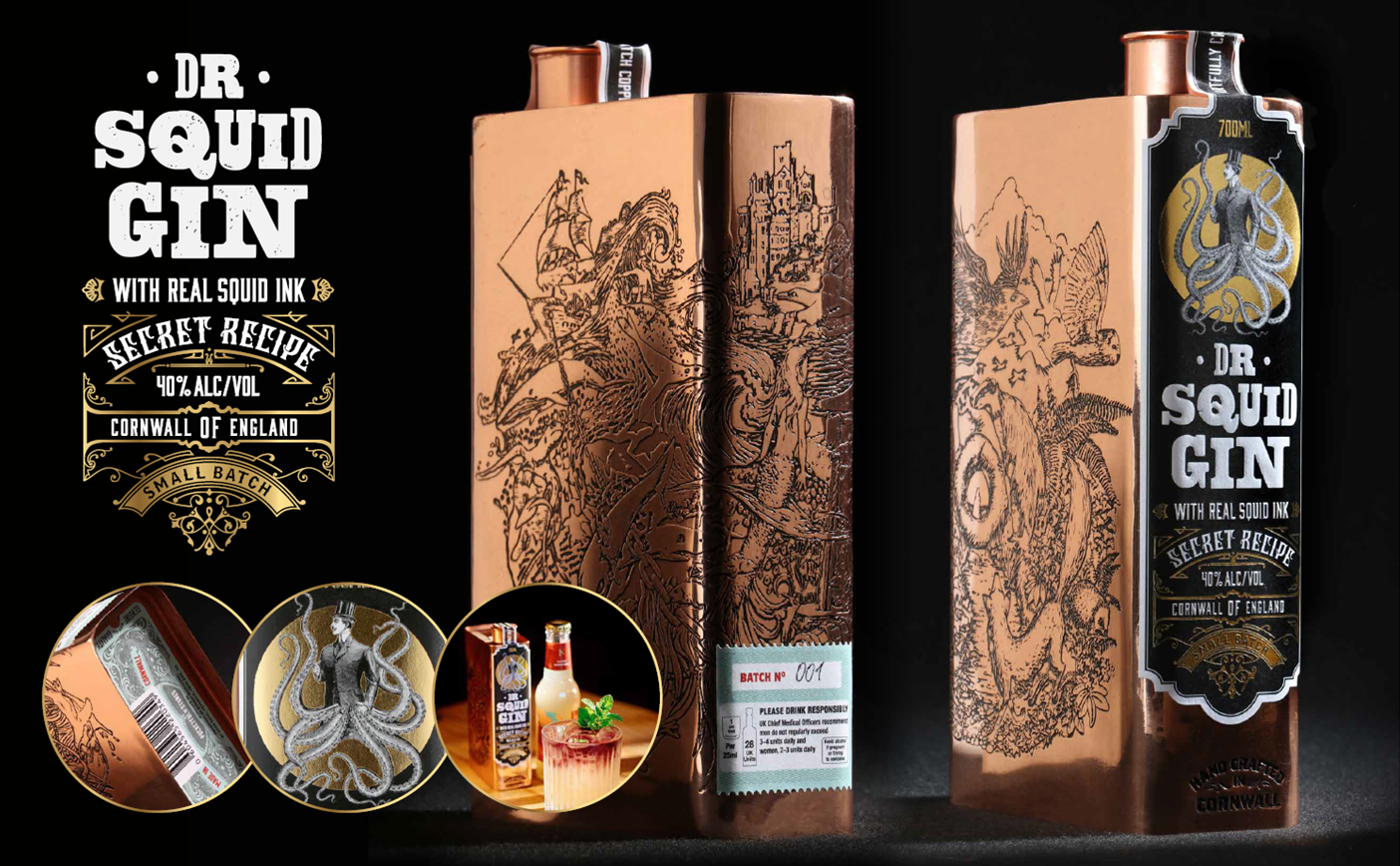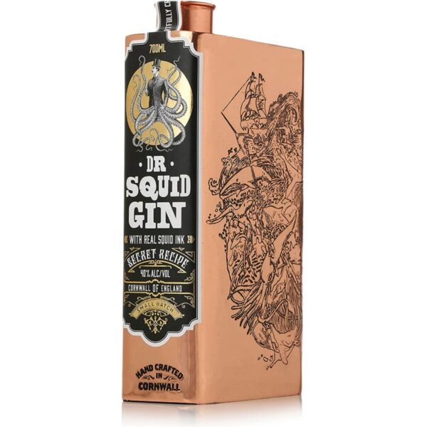 Der Dr. Squid Gin ist ein aussergewöhnlicher Gin aus dem Südwesten Englands. Seine Besonderheit liegt in der Verwendung von Tintenfisch-Tinte, die ihm eine tiefschwarze Farbe verleiht und welche bei Zugabe von Tonic Water in ein faszinierendes Rosa wechselt. Geschmacklich vereint er klassische Wacholdernoten mit maritimen sowie auch floralen Noten, Zitrusfrische, Sanddorn und einer leichten Süsse durch Vanille. Am besten serviert man ihn mit einem trockenem / würzigem Tonic und einem Zitrusschnitz oder dann als Gin Mule in Kombination mit Ginger Beer.