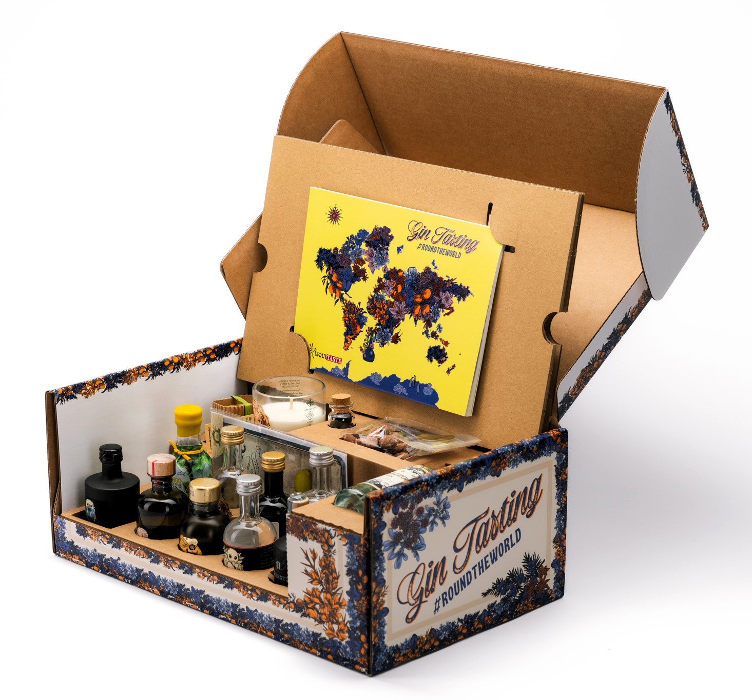 54cl Gin + umfassendes Zusatzmaterial (je 1x Snack, Gin-Seife, Gin-Duftkerze, Garnitur-Döschen, G&T-Blechpostkarte und Broschüre)