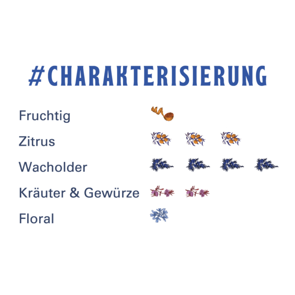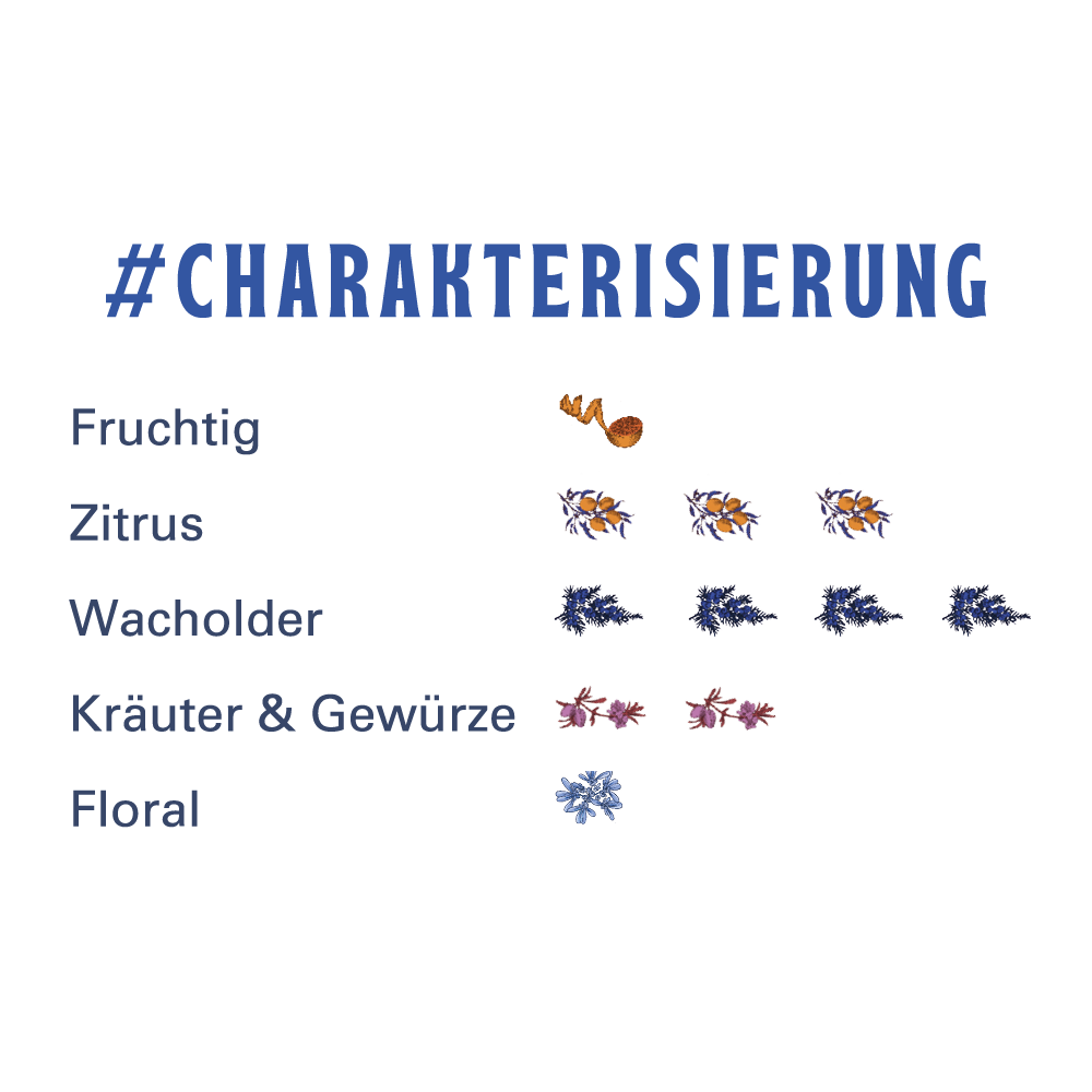 - Leicht trübe Färbung bei Tonic-Zugabe aufgrund vom hohen Gehalt an ätherischen Ölen