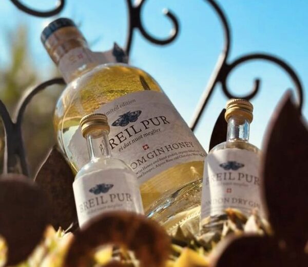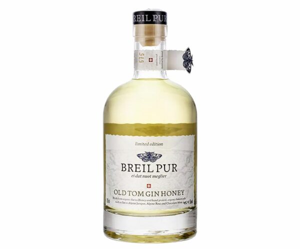 Der Old Tom Gin Honey ist eine limitierte Sonderedition der Breil Pur Gin-Ursprungsvariante. Der traditionell etwas gesüsste und vor allem im England des 18. und 19. Jahrhunderts beliebte Old Tom Gin ist englisches Kulturgut. Für die obligatorische Süsse sorgt der auf 1‘654 Meter über Meer auf dem Hochplateau in Tenna (GR) geerntete Bio-Berg-Bienenhonig mit Goldenem Qualitätssiegel.