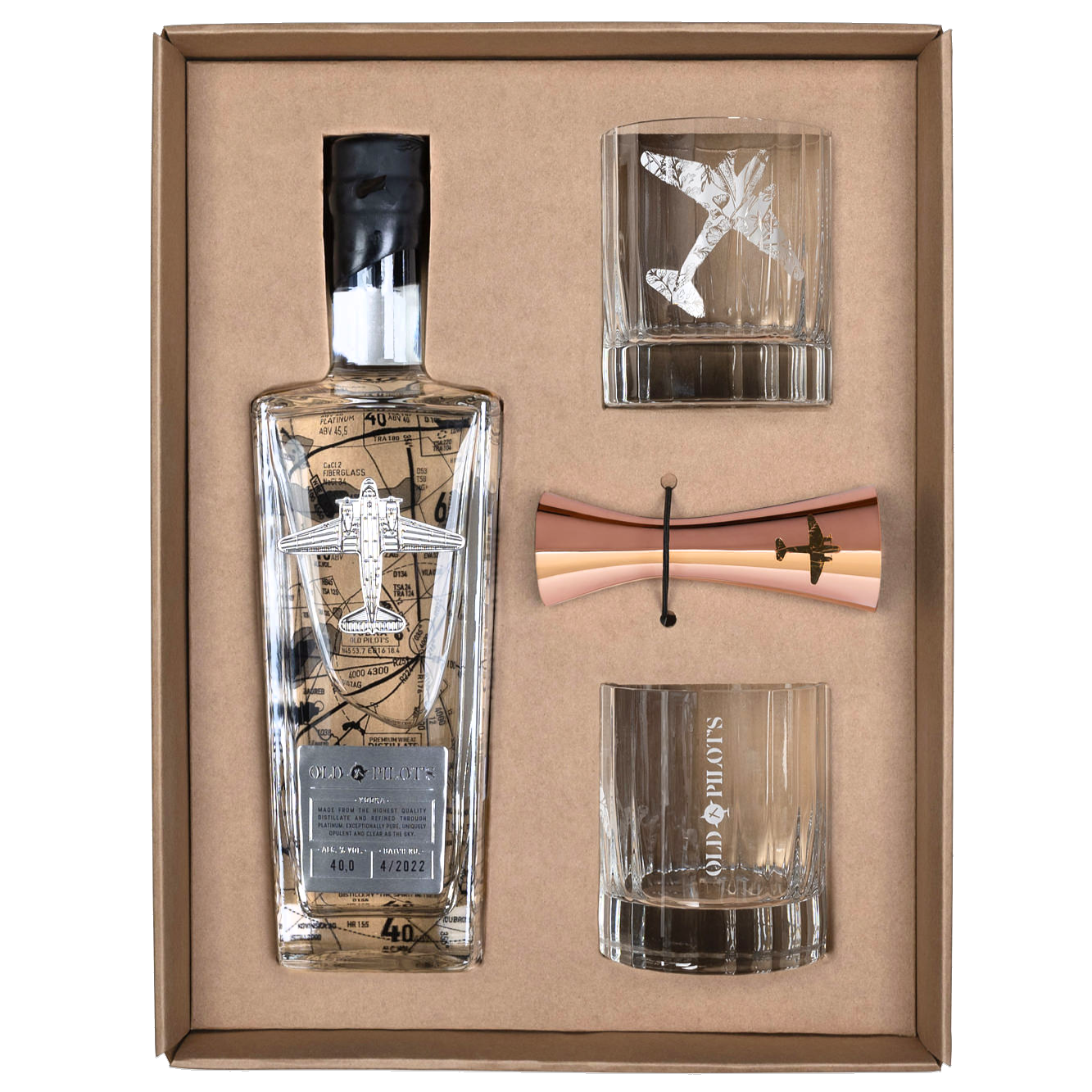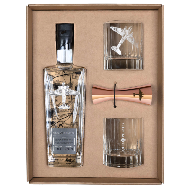 Old Pilot’s Geschenkbox Vodka 70cl mit 2 Gläsern & 1 Jigger